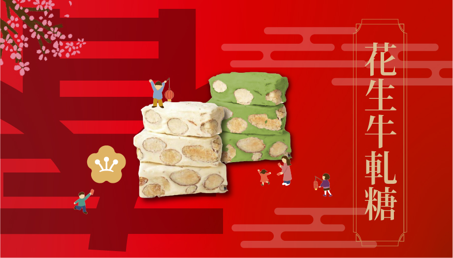 過年必備牛軋糖與中式糕點的新結合,大人小孩都通吃,年節商品的熱賣組合